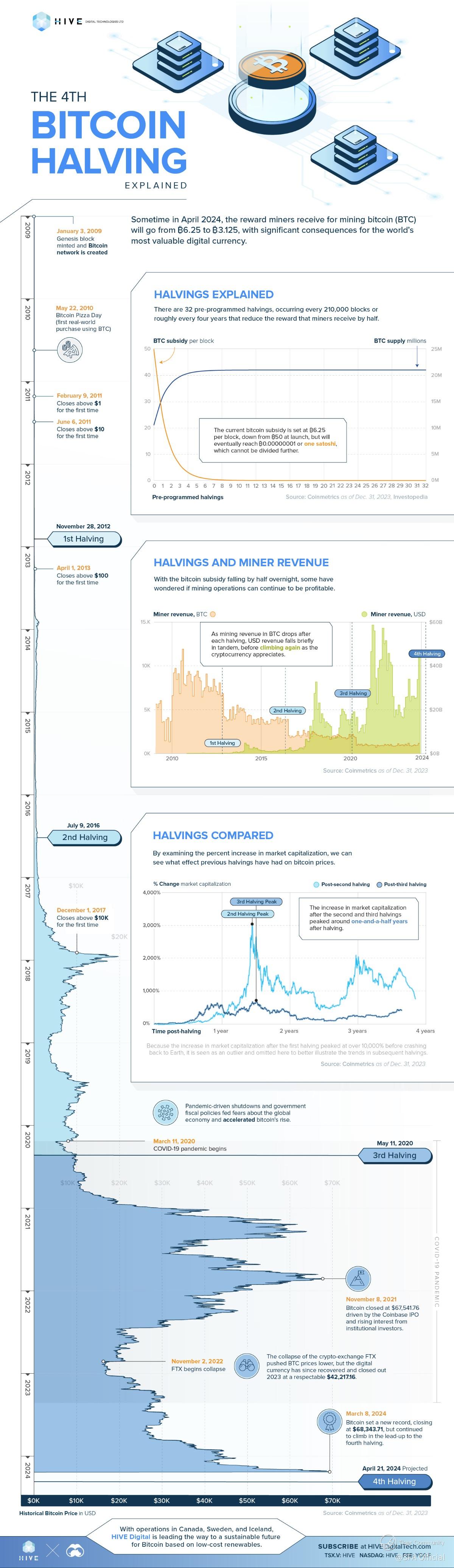 In April 2024, Bitcoin’s mining reward will halve from ₿6.25 to ₿3.125. This event, known as halving, is significant for the cryptocurrency.