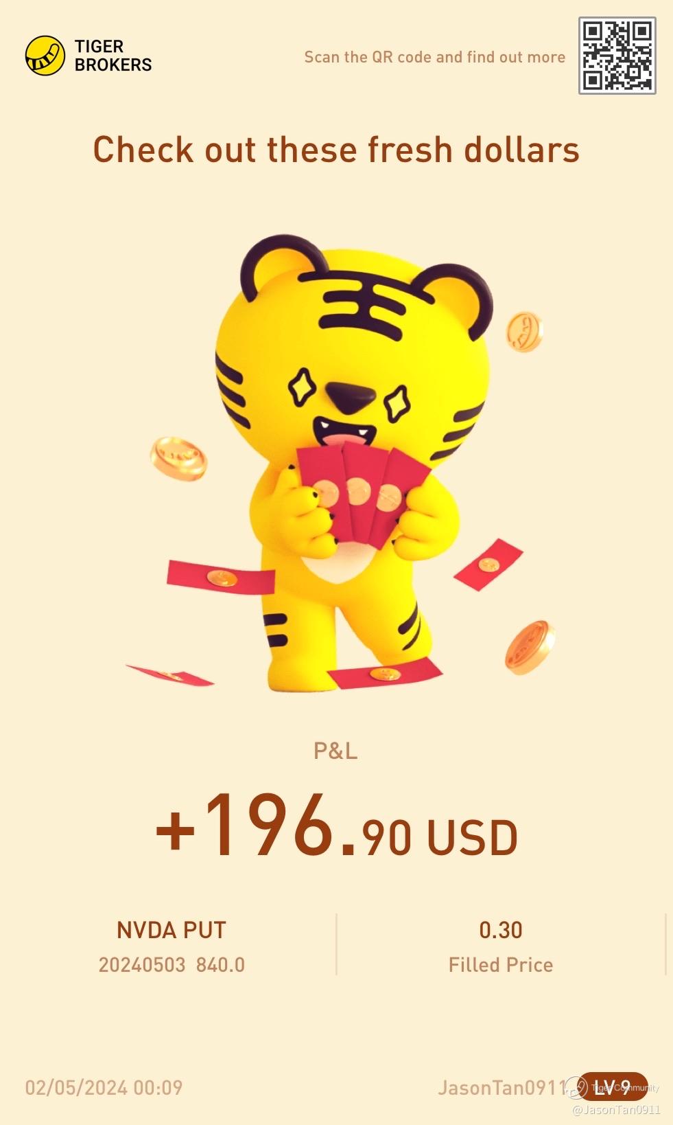 Day 4- Option trading total profit SGD$1078, today can say lucky that able to take profit within the first hour of market open.