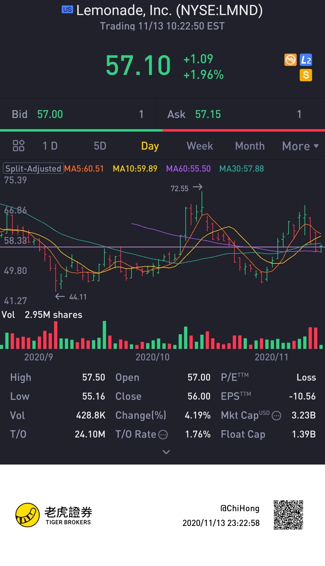$Lemonade, Inc.(LMND)$ is a game changer in Insurance industry! With recent quarter revenue increasing, I accumulate more at this $56 level.