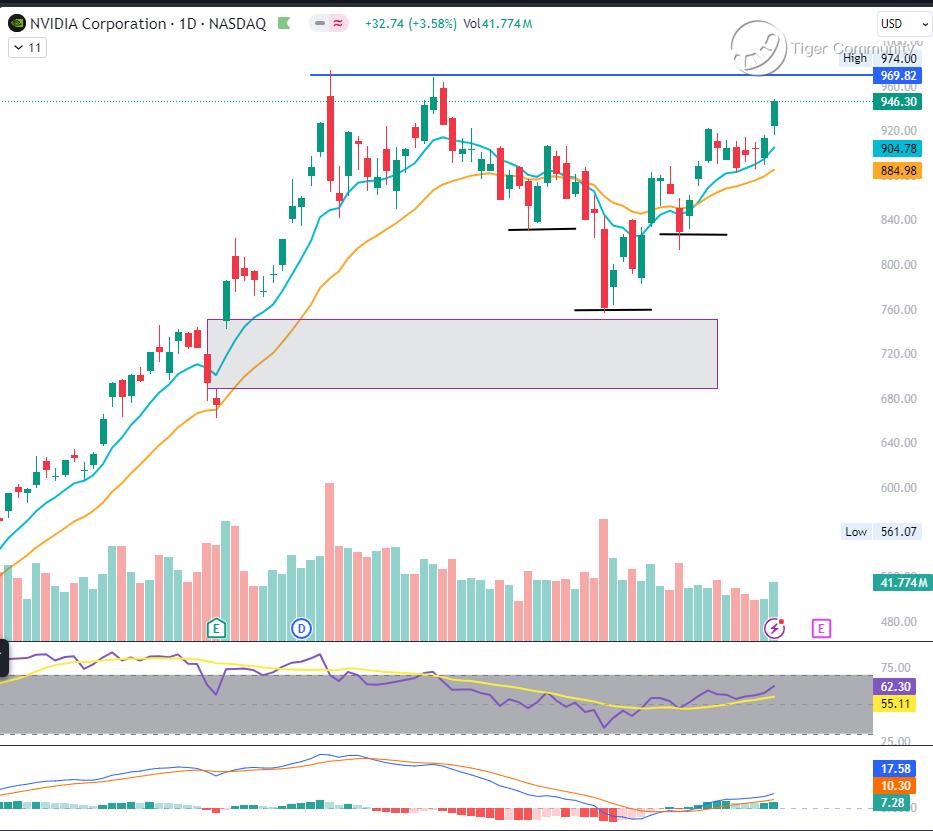 stock continues to break out after forming inverse head and shoulders on daily. next level to watch is $975. Stock is strong on indicators. call flow is bullish. everything looking right on this one.