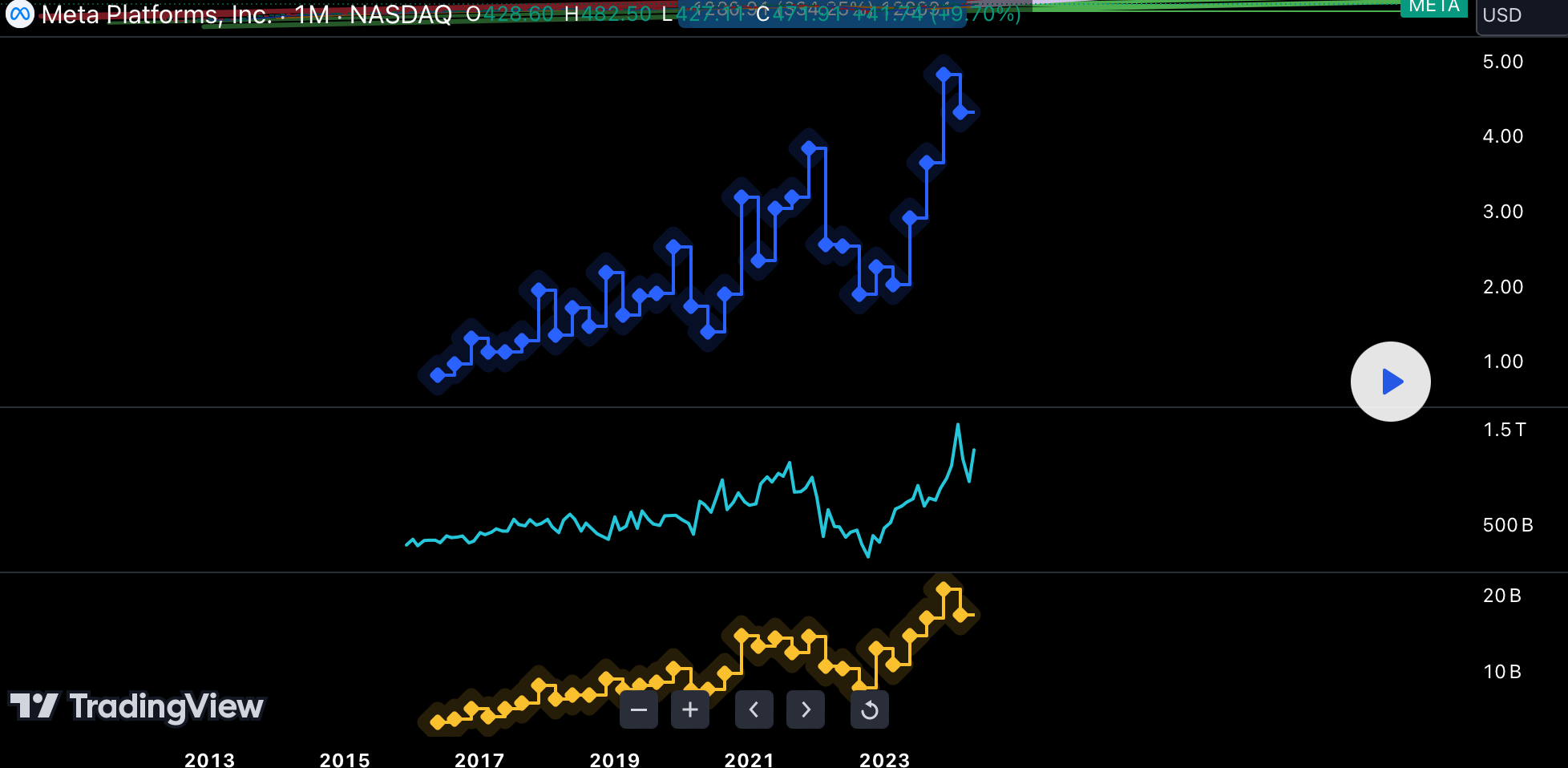 $Meta Platforms, Inc.(META)$ Meta has fully recovered from its 2022 losses, which occurred when investors panicked and sold off shares due to concerns over Zuckerberg's heavy spending on the Metaverse.