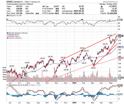 $Alphabet(GOOG)$ still has room to potentially fill to the top of this channel, which would be low $180s. It’s still holding both of its uptrend supports as well as of right now. I’ll be watching to see if it can fill up towards that uptrend resistance in the coming days/week or 2.