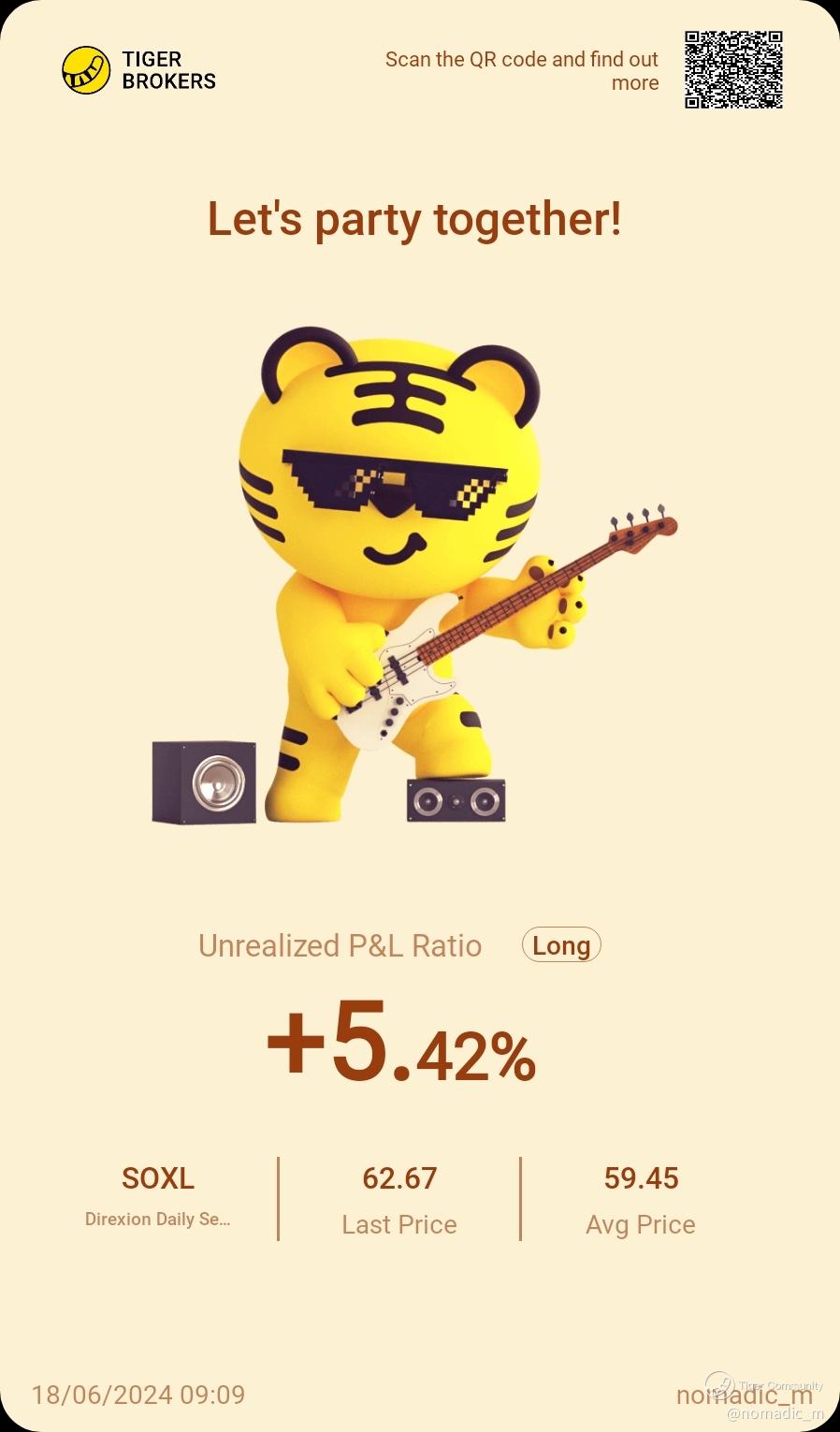 Went long $Direxion Daily Semiconductors Bull 3x Shares(SOXL)$ . Bullish on chip sector, hoping $Broadcom(AVGO)$ $NVIDIA Corp(NVDA)$  will keep the momentum going