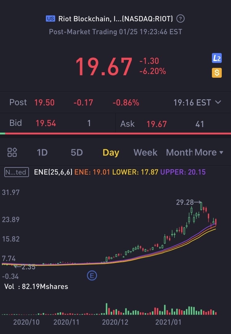 For higher risk taker can look directly into a stock like $Riot Blockchain, Inc.(RIOT)$current pull back opportunity: