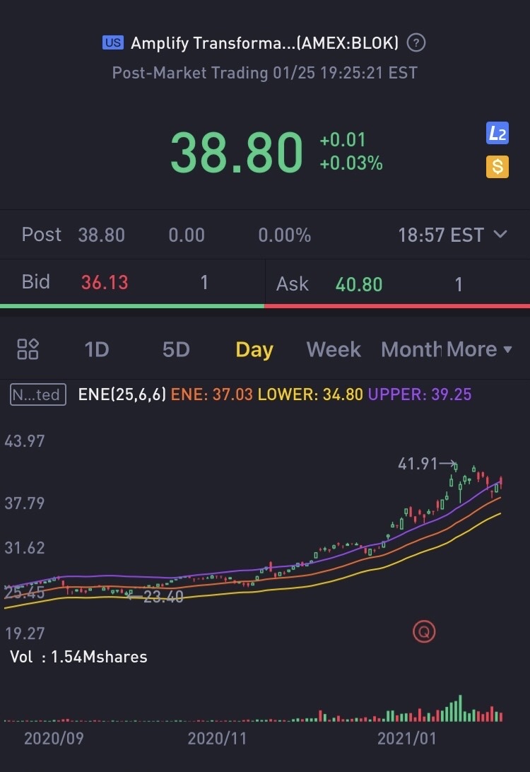 $Amplify Transformational Data Sharing ETF(BLOK)$currently on uptrend:
