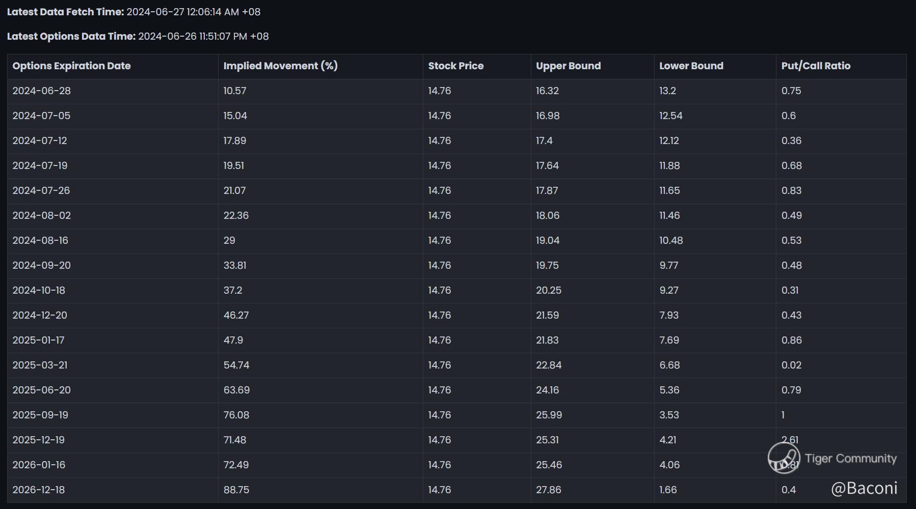 Based on the joint venture with Volkswagen, investors are bracing for significant volatility for $Rivian Automotive, Inc.(RIVN)$ today. The options market indicates an implied movement of 10.57%, with the stock currently priced at $14.76. This positions the upper bound at $16.32 and the lower bound at $13.20, suggesting a potentially wide trading range ahead of the earnings announcement on June 28, 2024 (Rivian — Electric Adventure Vehicles) (markets.businessinsider.com).
