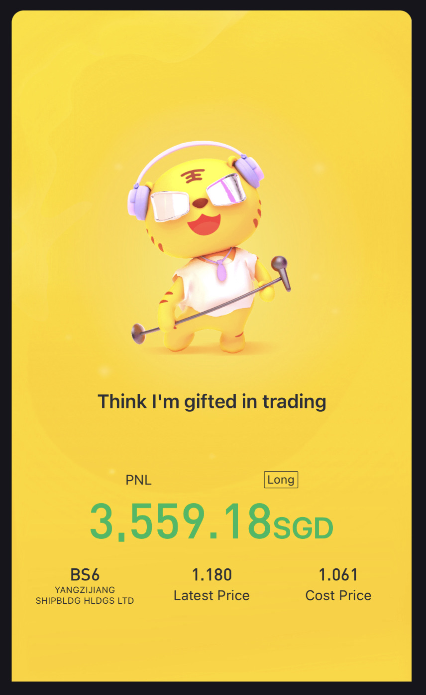 $YANGZIJIANG SHIPBLDG HLDGS LTD(BS6.SI)$Hope to hit $10k profit