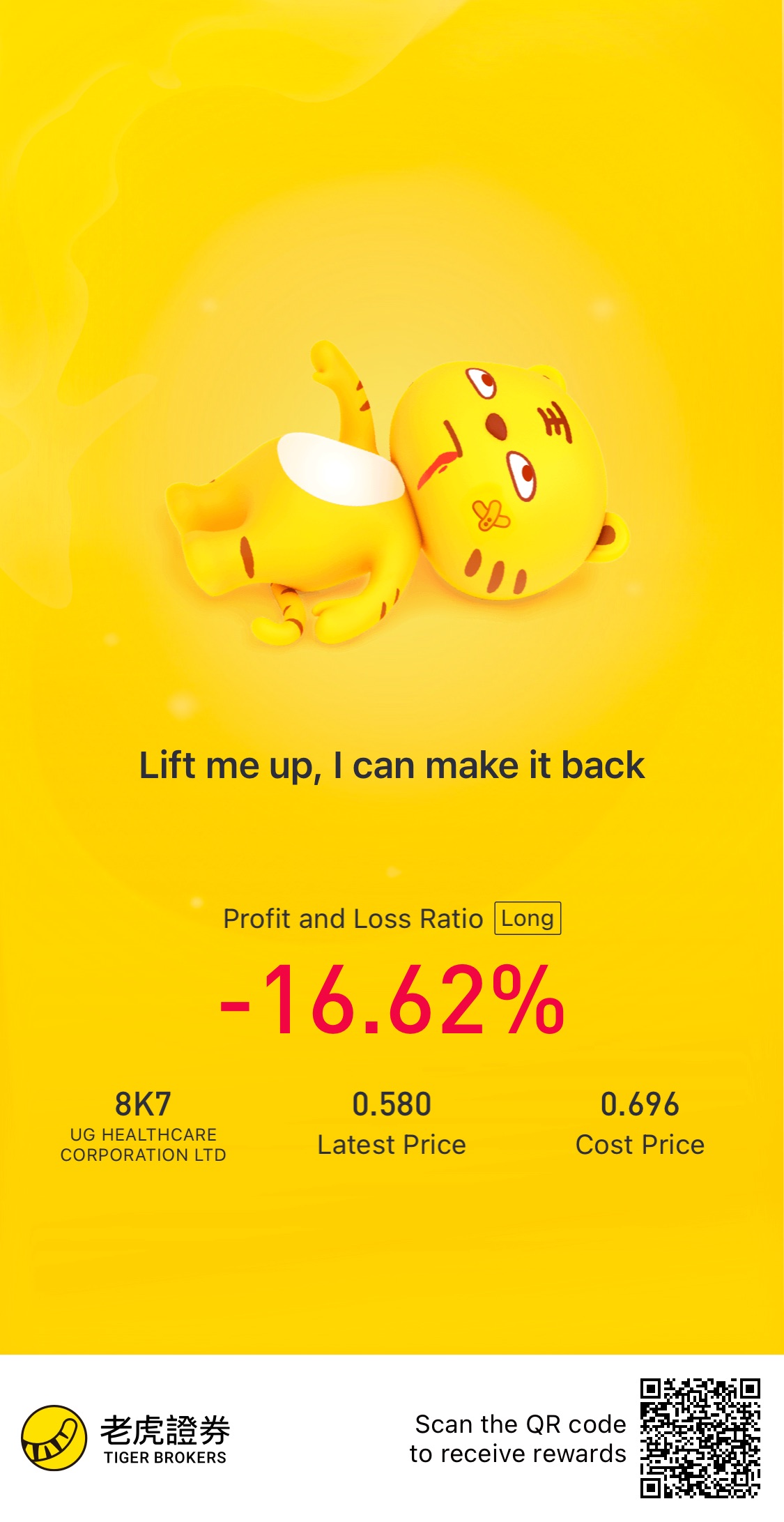 $UG HEALTHCARE CORPORATION LTD(8K7.SI)$Total UG share I’m holding is around 89 lot with an aggregate cost of $0.685