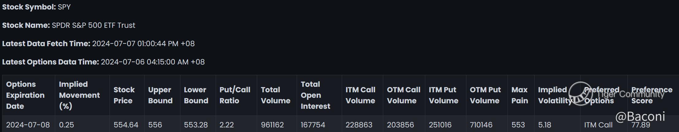 The financial markets are abuzz with speculation and analysis as we approach the options expiry date for the $SPDR S&P 500 ETF Trust(SPY)$ on 2024–07–08. The options data leading up to this critical date provides information that can help investors and traders make informed decisions. In this article, we delve into the options metrics for SPY, analyze the implications, and provide insights that could influence stock movements.