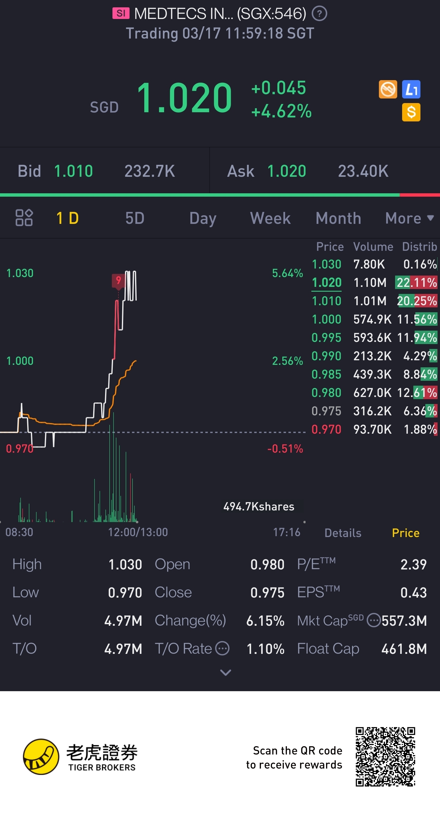 $MEDTECS INTERNATIONAL CORP LTD(546.SI)$it shooting up finally