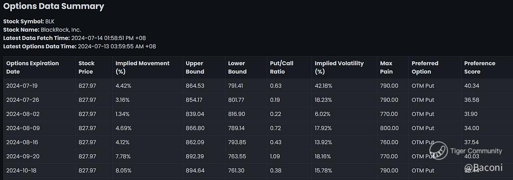 $BlackRock(BLK)$, the world’s largest asset manager, is set to release its Q2 2024 earnings on July 15, 2024, before the market opens. This upcoming earnings report and the corresponding options data provide a significant opportunity for traders and investors to assess the stock’s potential movements and make informed decisions. This article will delve into BlackRock’s financial performance, analyze options data, and explore the potential market impact based on implied movements and critical metrics. The options expiration date for BlackRock is July 19, 2024.