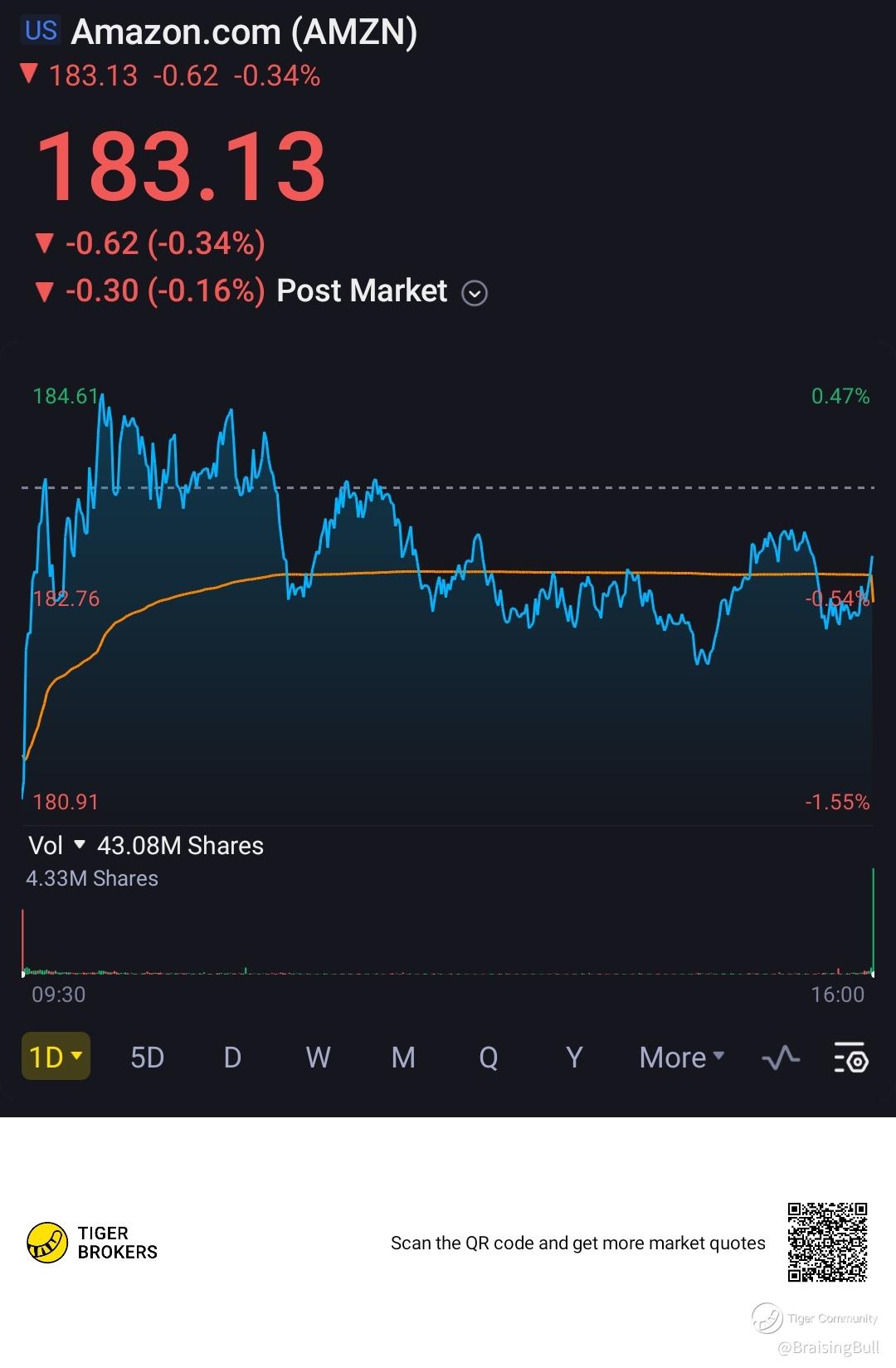 $Amazon.com(AMZN)$ Amazon is not losing out. With over 4M shares and -0.16% Post market drop