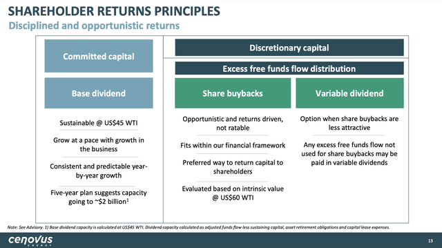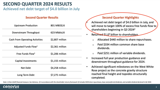 Having said all of this, like its bigger "brother" Canadian Natural, Cenovus Energy has hit its ($4 billion) debt target, which will allow it to return 100% of its free cash flow to shareholders, starting in the third quarter of this year.