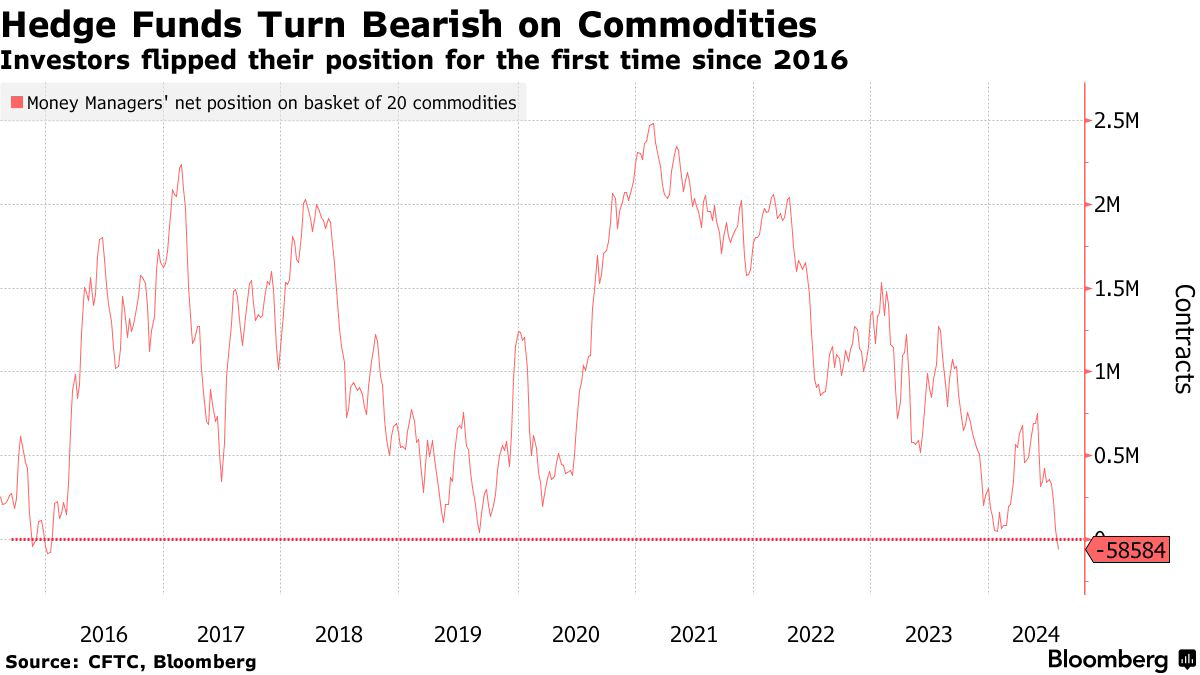 - Hedge funds have turned bearish on commodities, similar to 2016. Concerns about China’s growth and supply issues are affecting the market.