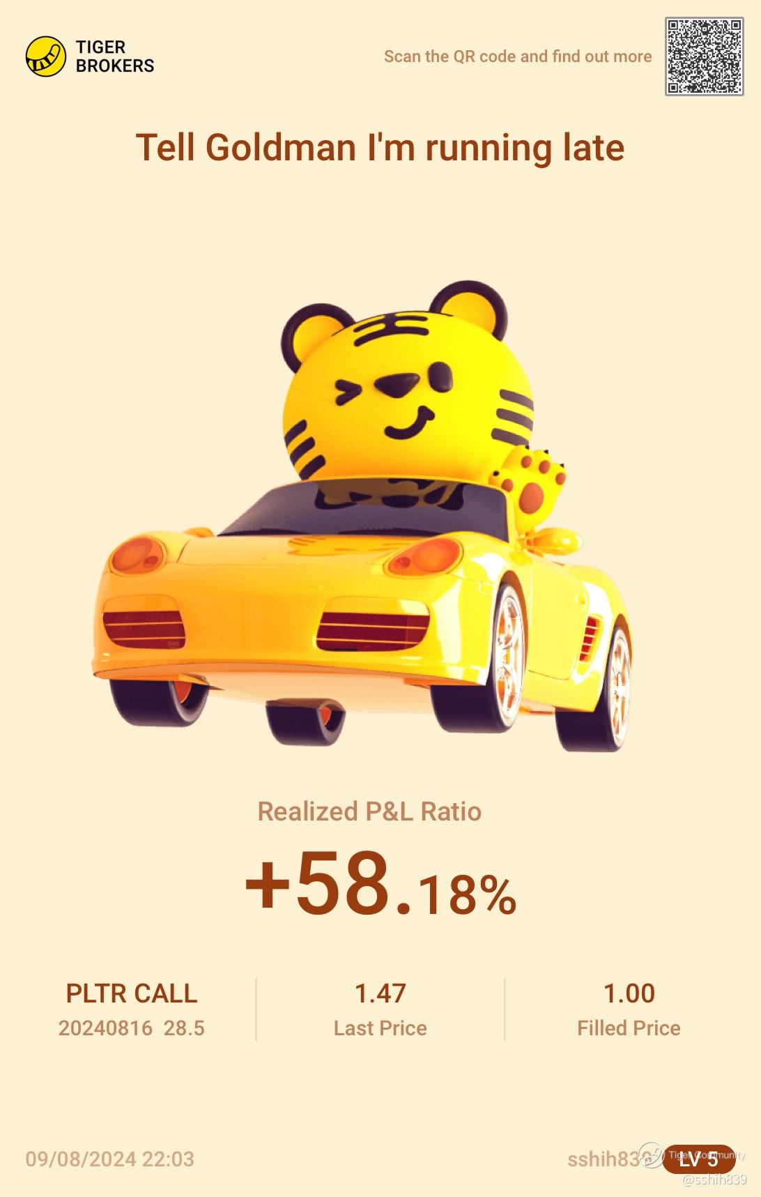 $PLTR 20240816 28.5 CALL$ Catching some small win in this uncertain time where market swing is extreme. I am still bullish on this stock and will be buying again soon...