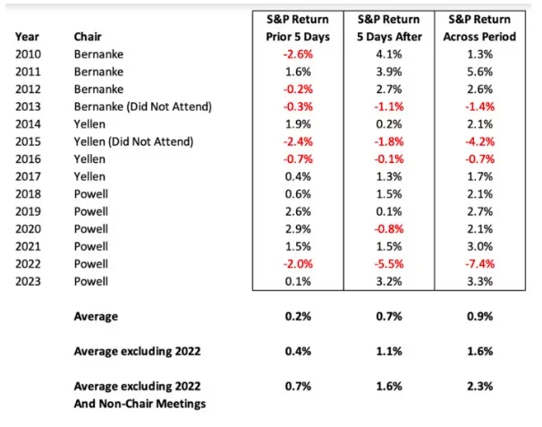 The S&P 500 index tends to rise in the two weeks before and after the Jackson Hole Symposium, especially following the speech by the Federal Reserve Chair.