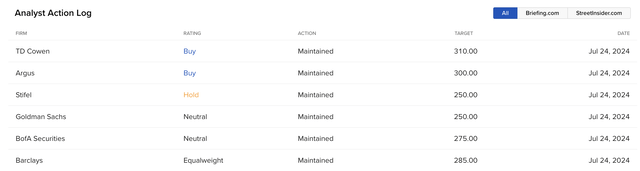 These are the price targets after the earnings release, with targets up to $310, 14% above the current price.