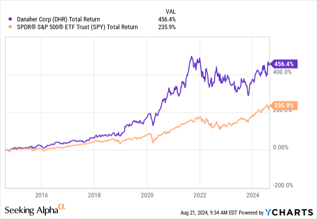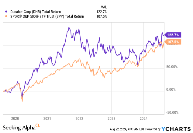 Although I cannot make the case that DHR should be bought for its dividend, on a long-term basis, I expect the dividend to have a meaningful impact on its total return.
