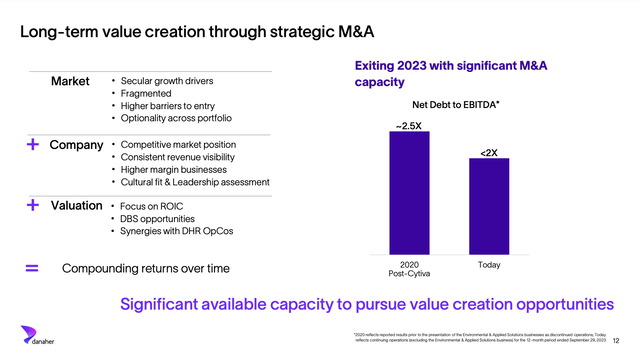 - Now, Danaher has a bigger footprint, a healthy balance sheet, and stronger free cash flow capabilities.