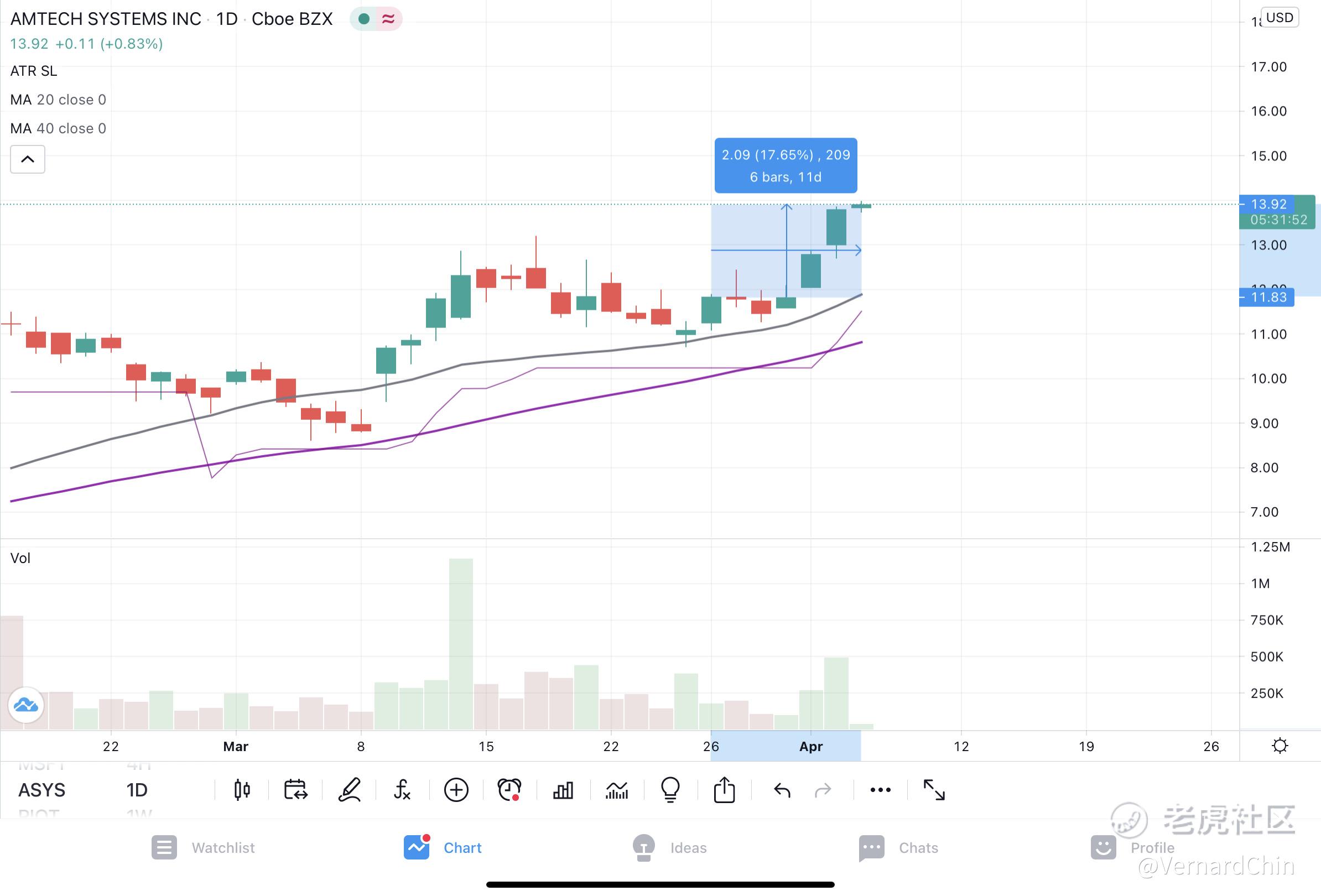 Amtech Review after 2 weeks. Since pick upon 26/03, stock runs for 17.65% profit. Volume and chart looking good. Not sure will continue to run. What do you think?