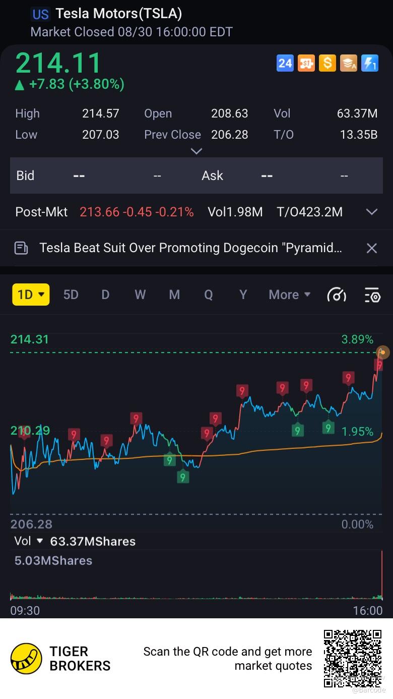 - $216.00: ๐ข Full steam ahead~Tesla's revving up.