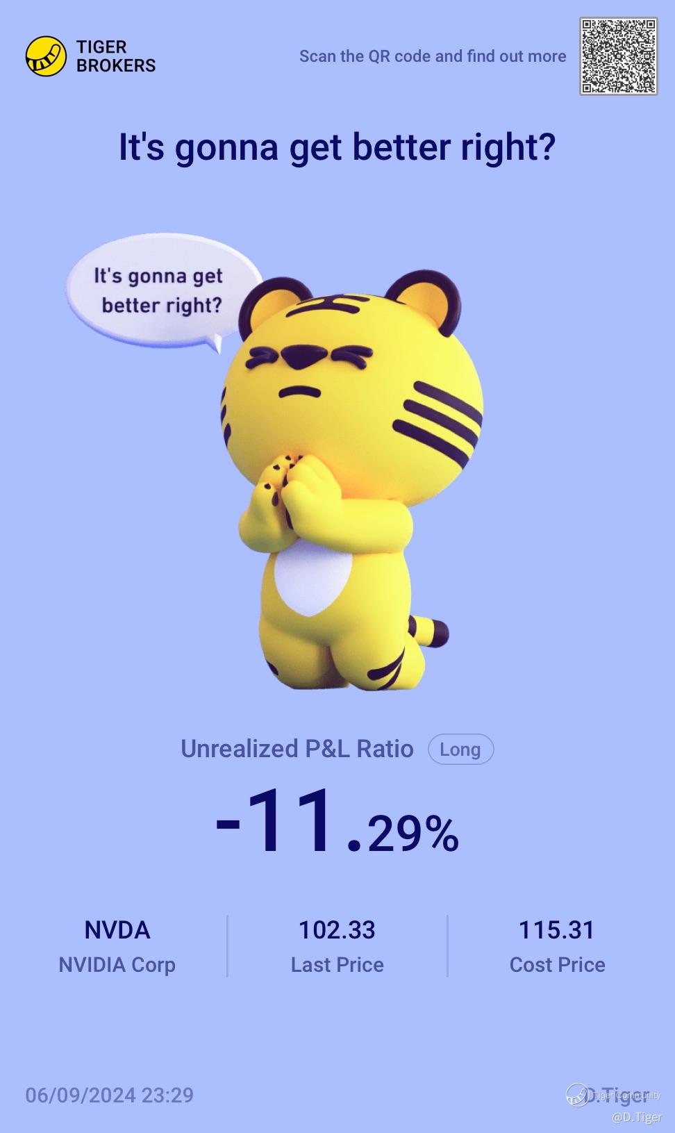 $NVIDIA Corp(NVDA)$ Although for the pass week all the magnificent seven have been facing a downtrend, US economy is worrying but I believe these companies foundation is solid. Whatever goes down will come up eventually, its a test for patience and holding power.