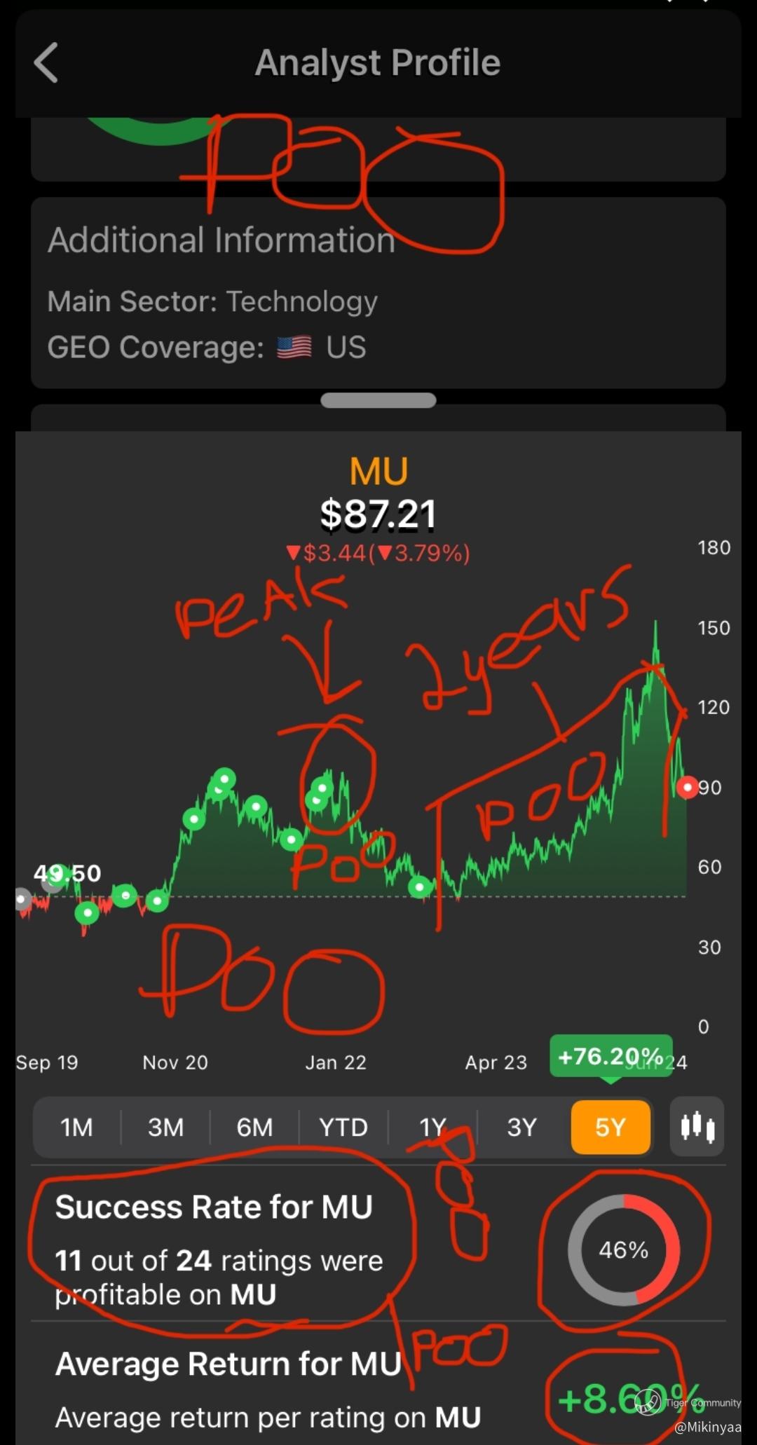 $美光科技(MU)$ I'm researching into the analyst who issued the recent double downgrade of Micron. His record isn't very impressive.[开心] [开心] [开心]