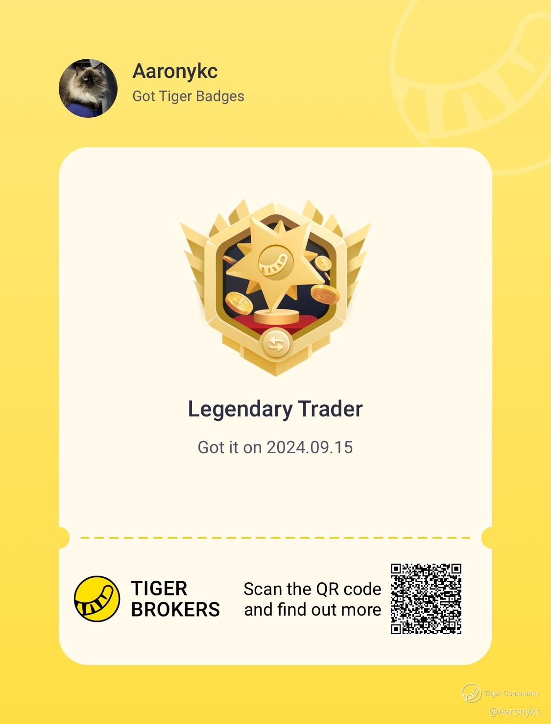 Thanks Tiger Brokers for this badge I am very honoured. I use many brokerages to diversify my portfolio and tiger brokers is the best, their fees are the lowest and they have the best rewards for active traders and bloggers who share their knowledge and ideas, and the community of traders here are lively and insightful. I really love this platform [Heart]