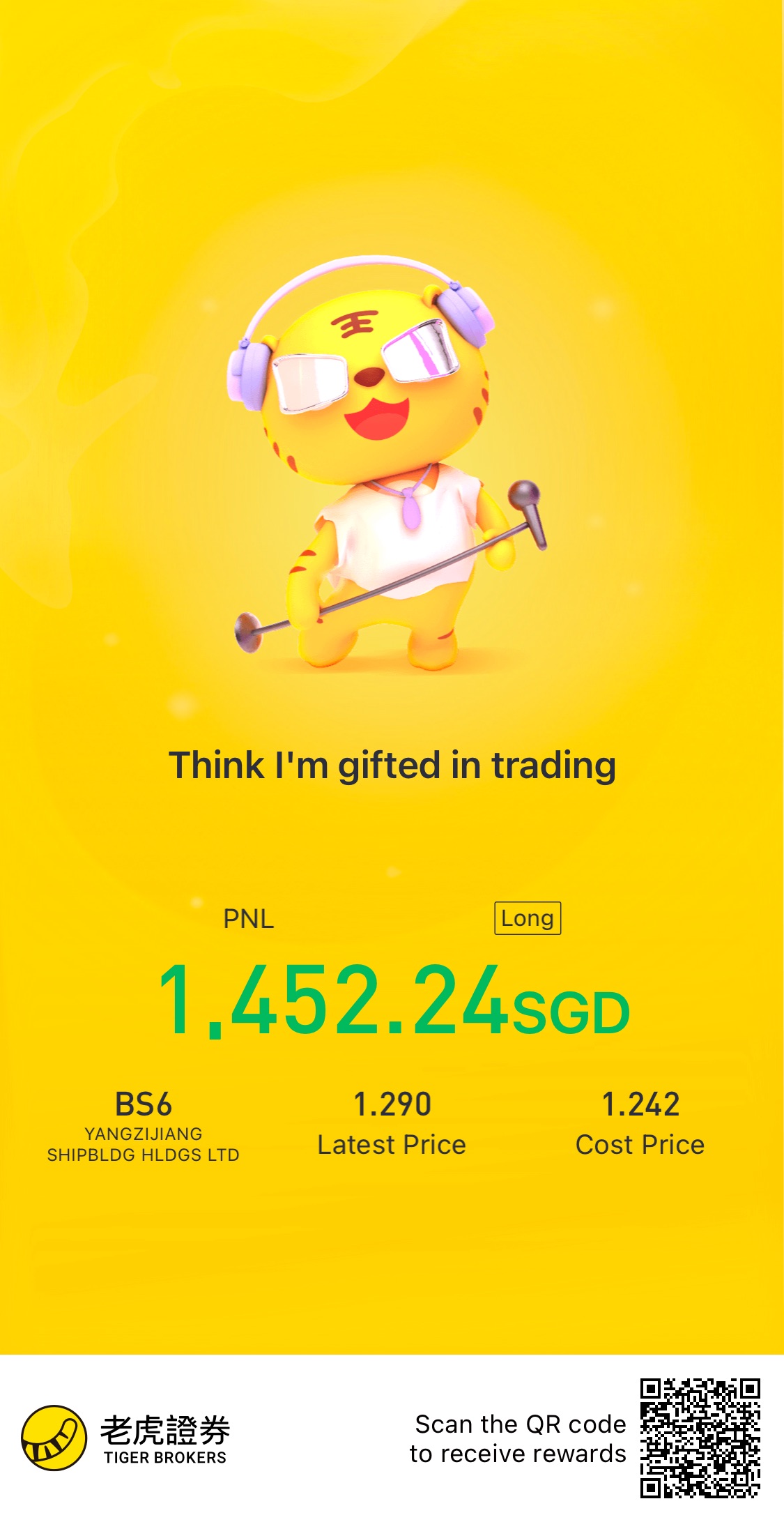 $YANGZIJIANG SHIPBLDG HLDGS LTD(BS6.SI)$Not bad for 2 day only. Let’s go to $1.50 YZJ