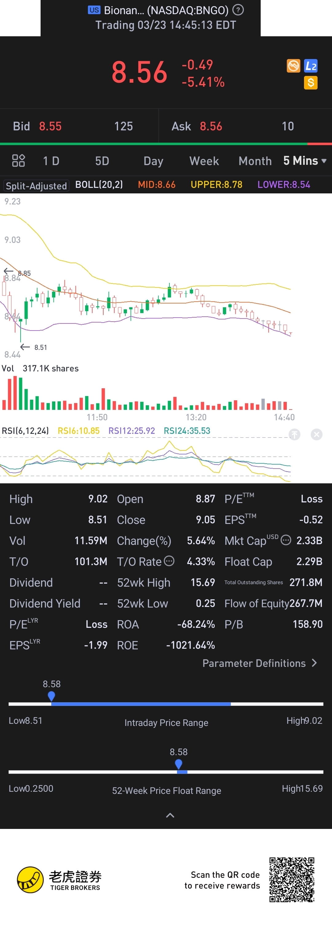 Very close to the bottom band. And oversold. Time to buy more if you trust the company will do well in the long term. $Bionano Genomics(BNGO)$