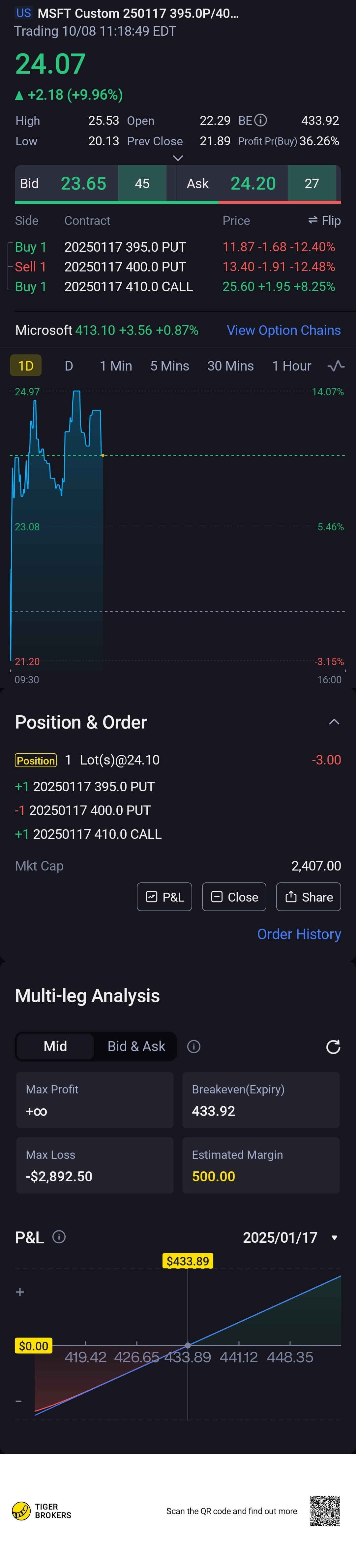 $MSFT Custom 250117 395.0P/400.0P/410.0C$ 405-407 seems to be strong support, hence opened this BB on MSFT to ride the bullish trend