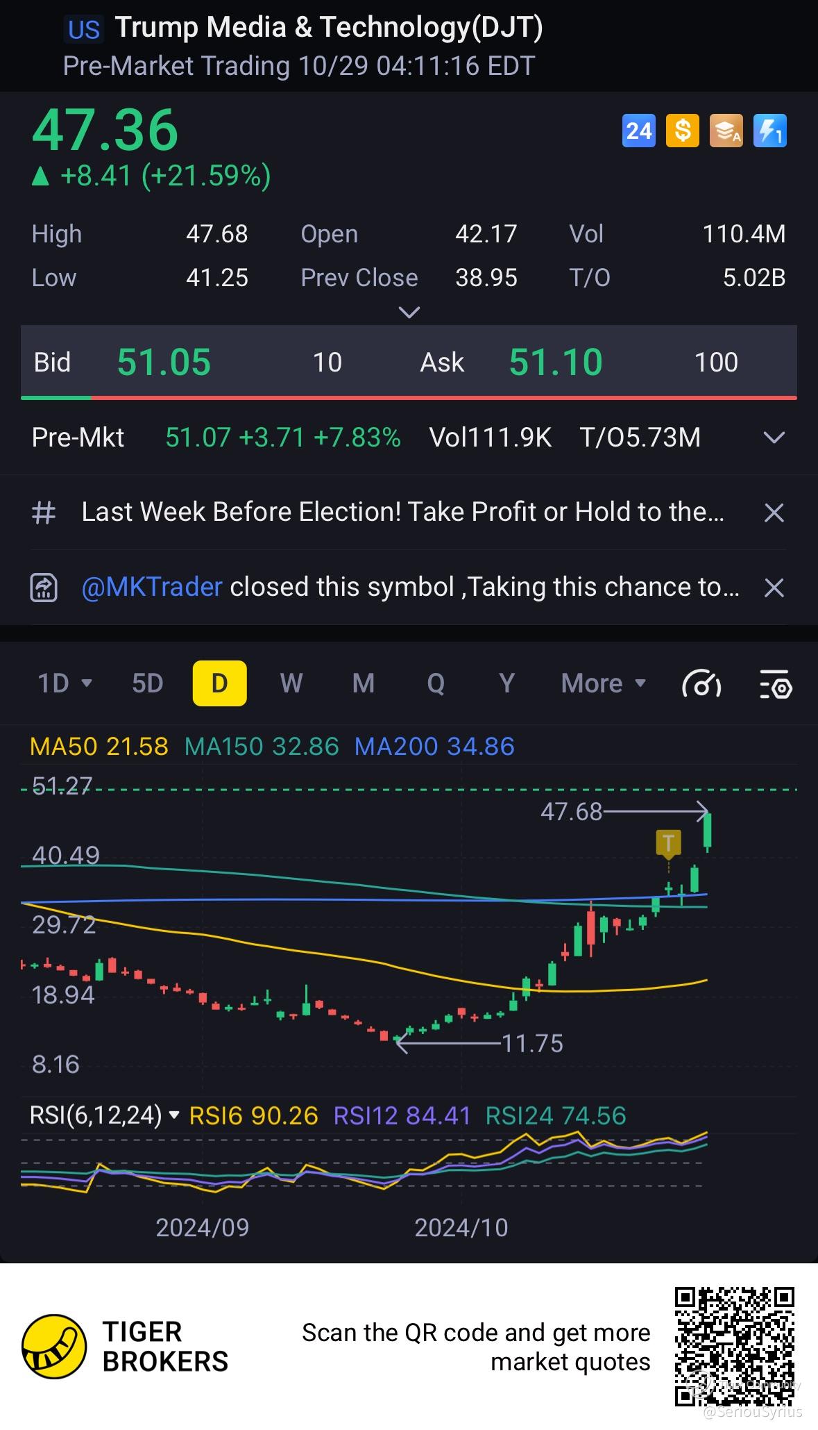 $Trump Media & Technology(DJT)$ The pump is crazy on DJT. Potentially will rally towards $60 and see some resistance. Remember to take profit or shift your SL