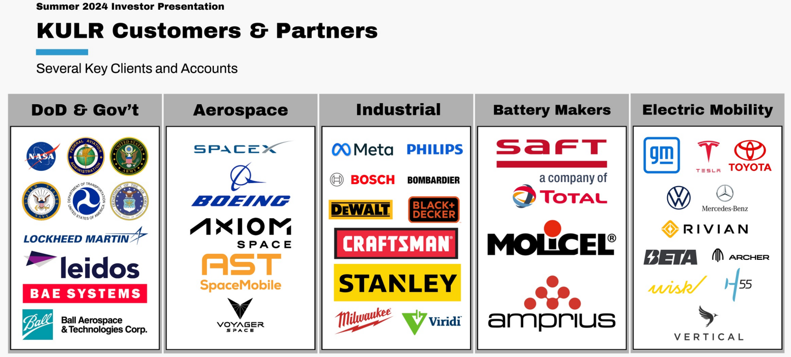 Speaking of partners, while a lot of their business is covered by NDAs, KULR have released a small peek at some of the customers they're working with, including some big names like-