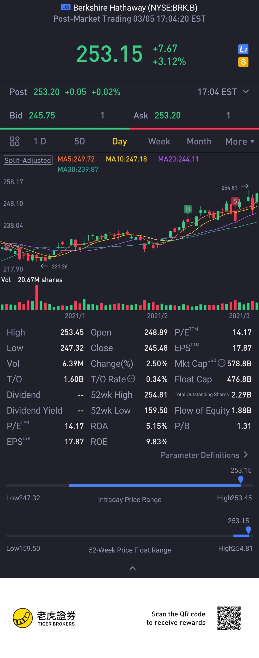 $Berkshire Hathaway(BRK.B)$Still the most stable stock