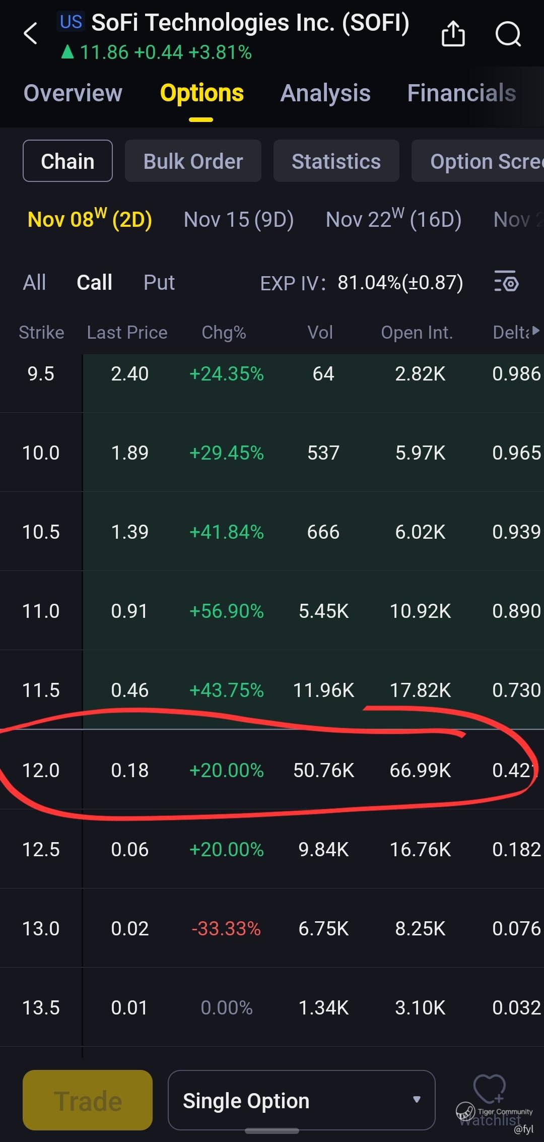 $SoFi Technologies Inc.(SOFI)$ Hold strong above 12. Don't let the shorts win. They will do their best to kill the $12 and above calls expiring this Friday.