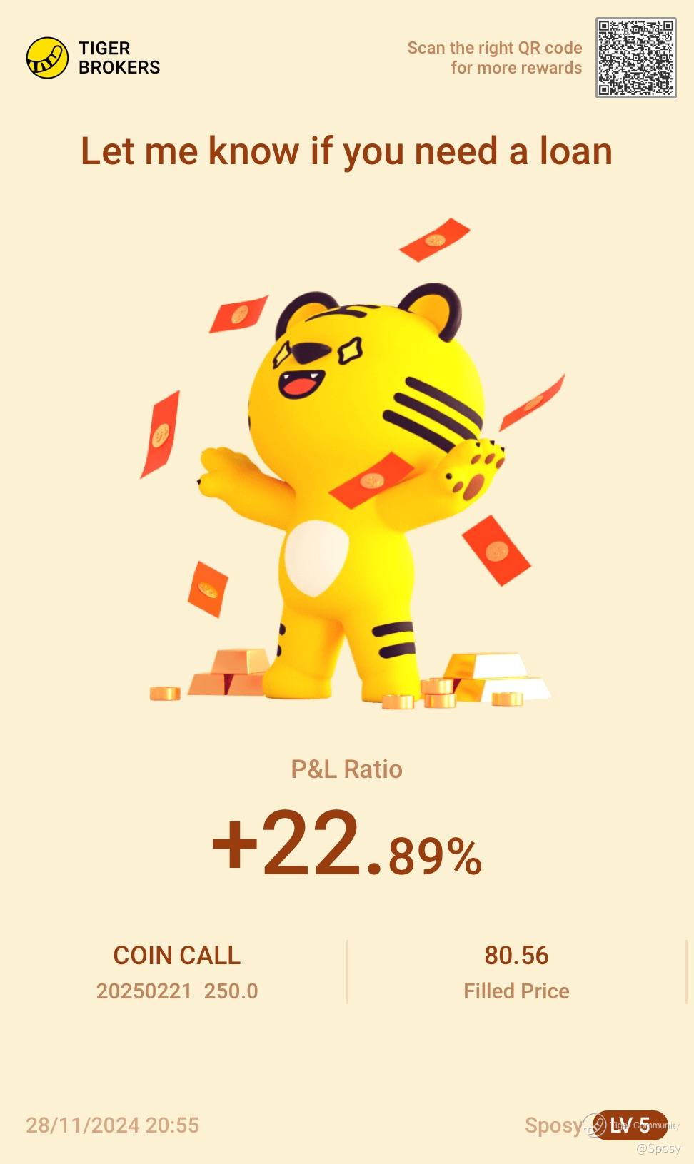$COIN 20250221 250.0 CALL$ Held onto it worth while