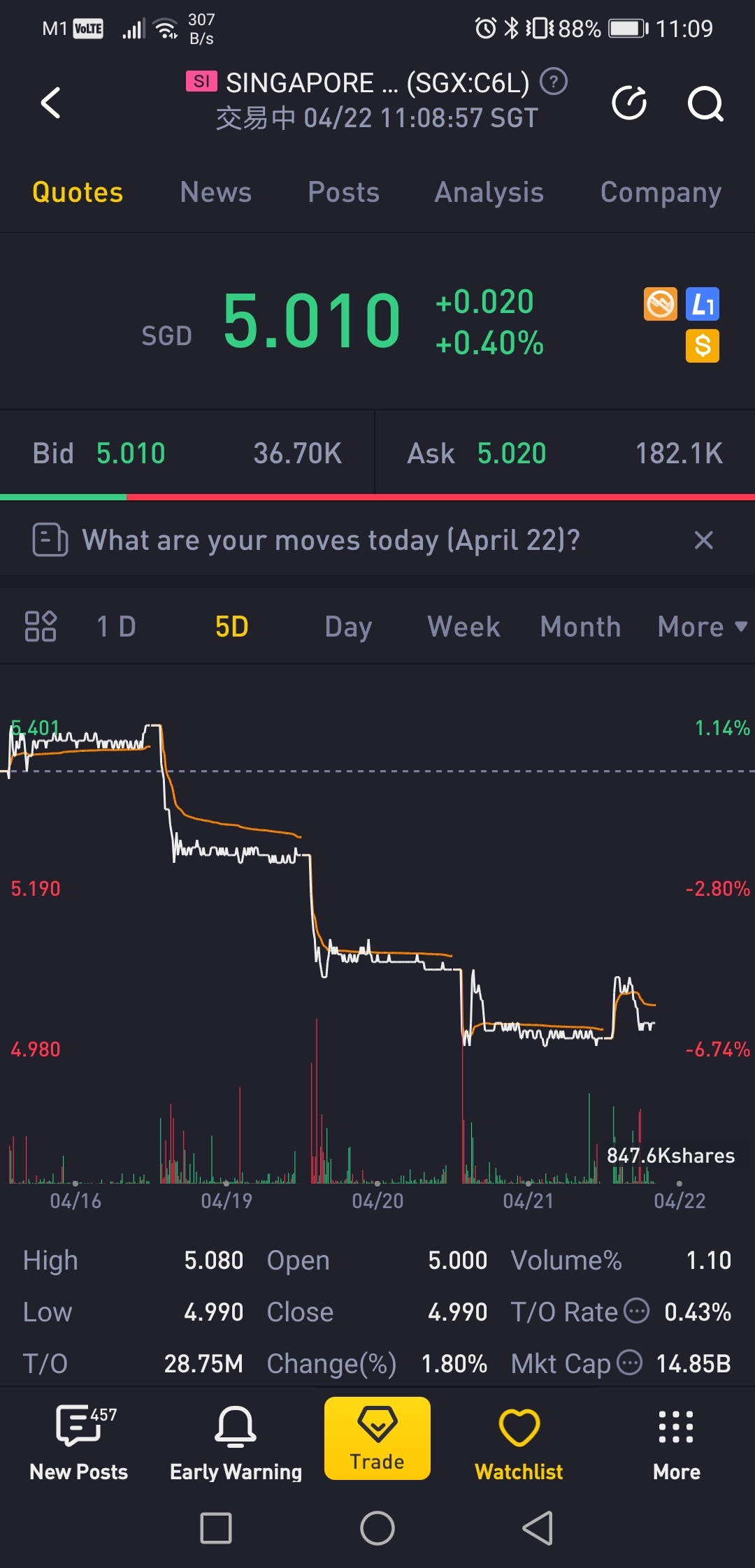 $SINGAPORE AIRLINES LTD(C6L.SI)$staircase drop..