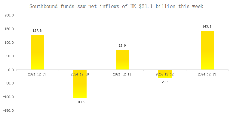 Southbound funds saw a net inflow of HK$21.1 billion this week.
