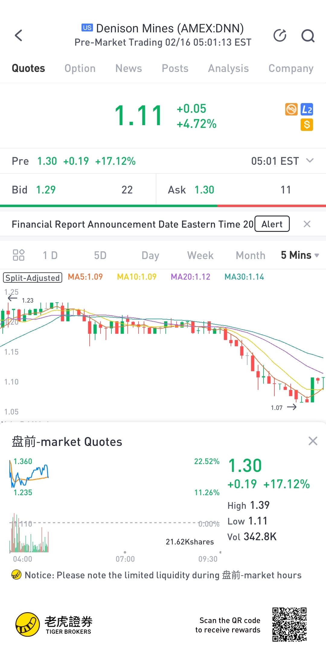 $Denison Mines(DNN)$good volume in premarket and good price. looks promising.