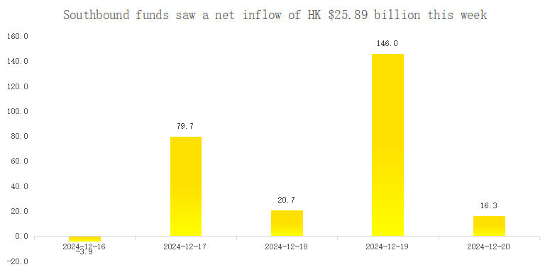 Despite the market downturn, southbound funds continued to flood into Hong Kong stocks, with a net inflow of HK $25.9 billion.