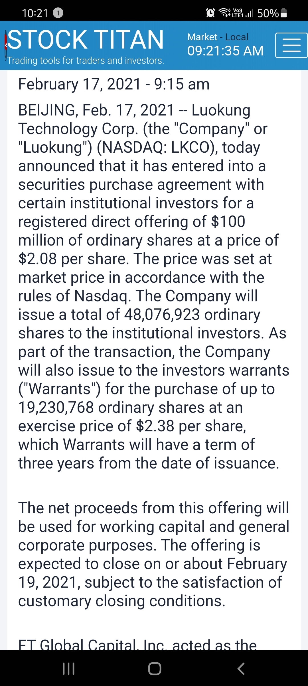 $Luokung Technology Corp(LKCO)$Direct Offering so the share price will naturally drop alot due to dilution. However will rebound back after that