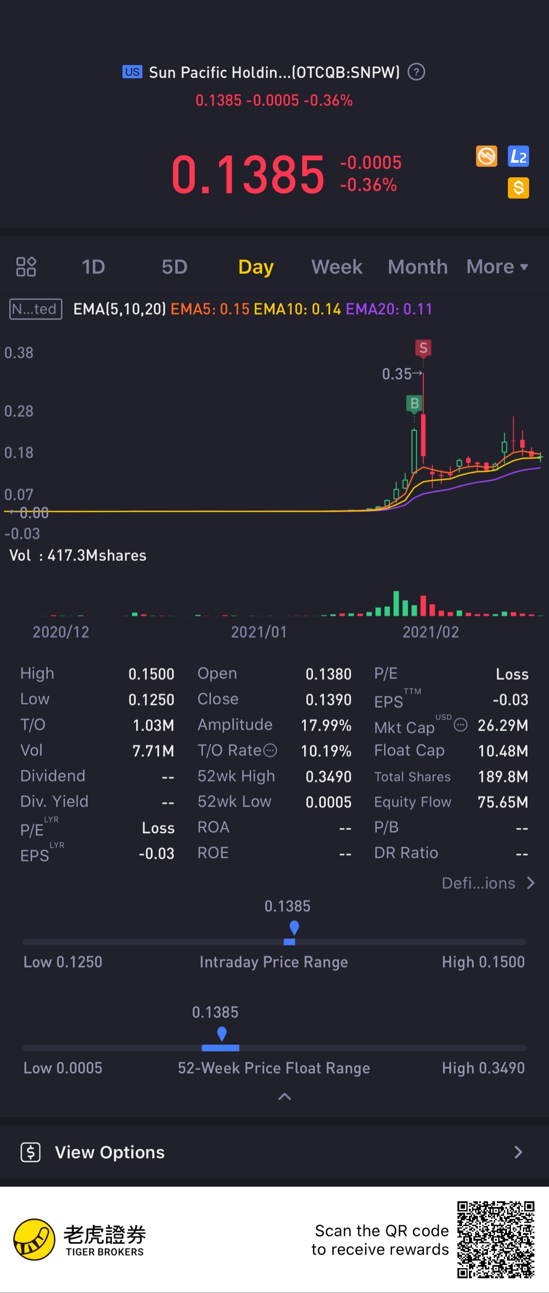 $Sun Pacific Holding Corp.(SNPW)$look at chart, now is the time to get on the train