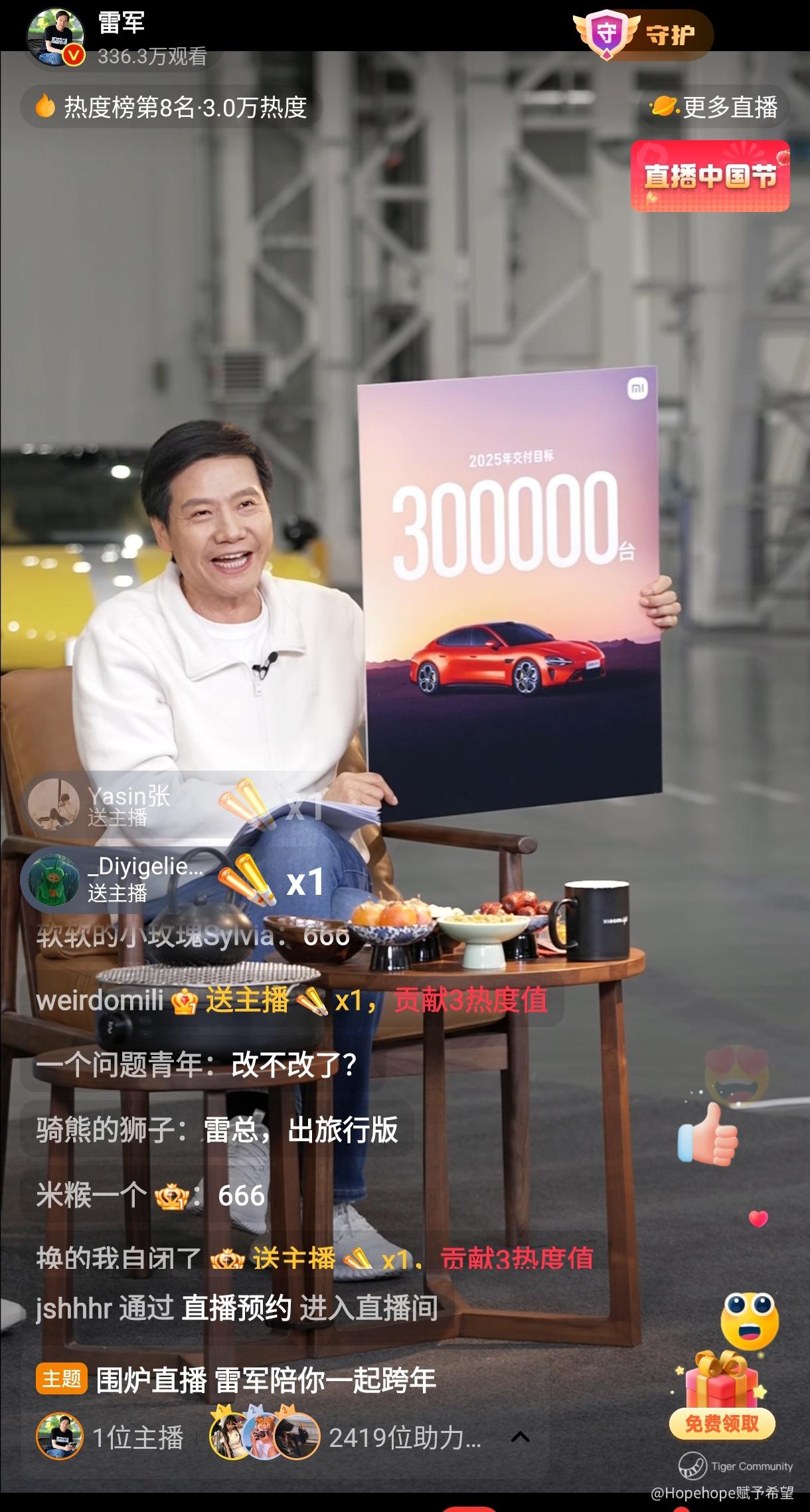 $XIAOMI-W(01810)$ Xiaomi targets 300k electric vehicle deliveries in 2025! Faith in Lei jun