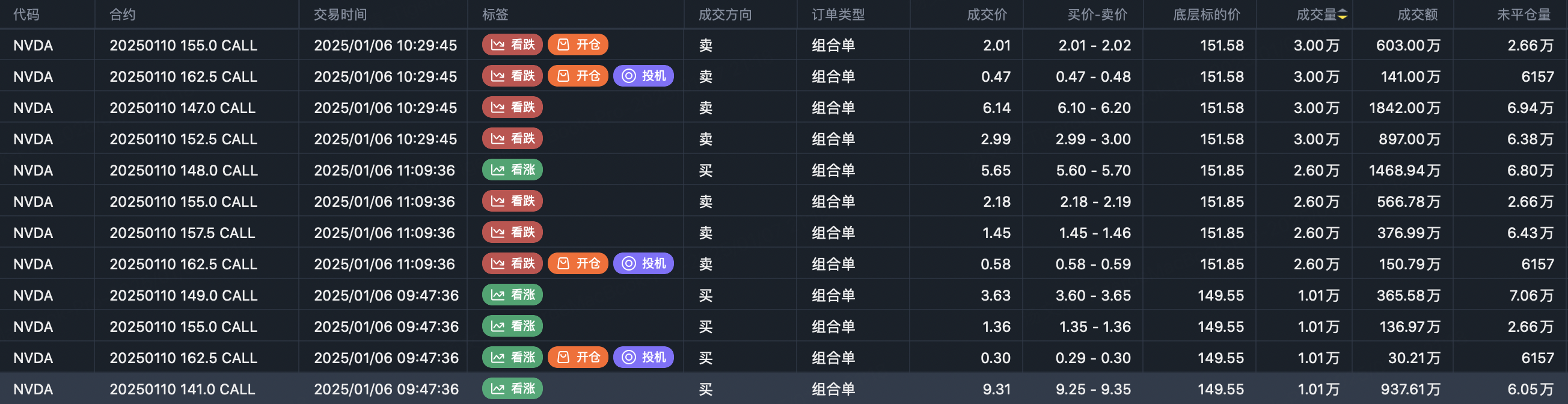 Next week's highest new call position remains $NVDA 20250117 160.0 CALL$ , with similar 160 strike positioning visible in later expiries, typically indicating clear market direction.