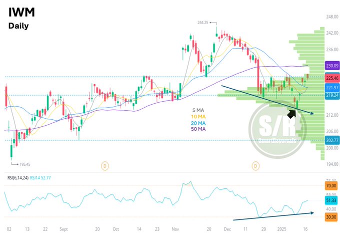 $iShares Russell 2000 ETF(IWM)$ - Bullish divergence in the daily chart