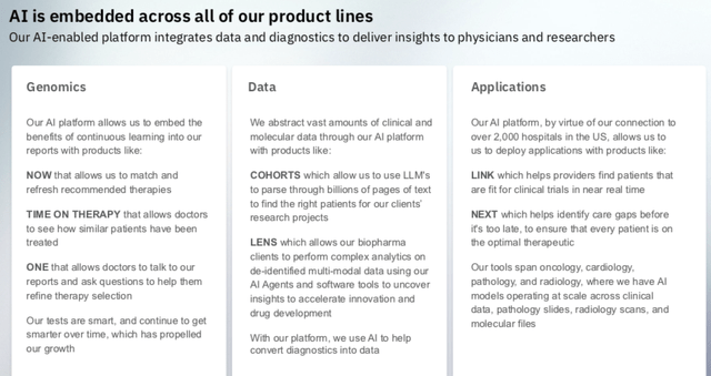 The company’s proprietary database, which the company calls “Intelligent Diagnostics,” is the key competitive differentiator. By combining the proprietary dataset, next-generation diagnostics, and generative AI, the company aims to provide more accurate and personalized treatment suggestions.