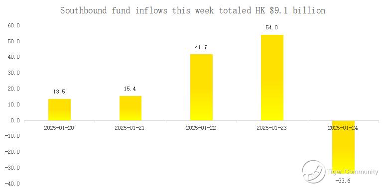 Southbound funds saw a net inflow of HK$ 9.1 billion this week.