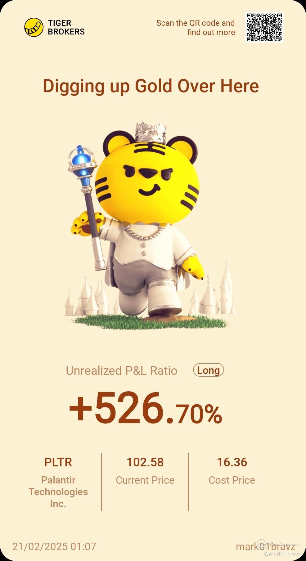 $Palantir Technologies Inc.(PLTR)$ Nothing beats long term investing. Despite the drop in palantir recently, I am still up by 500%
