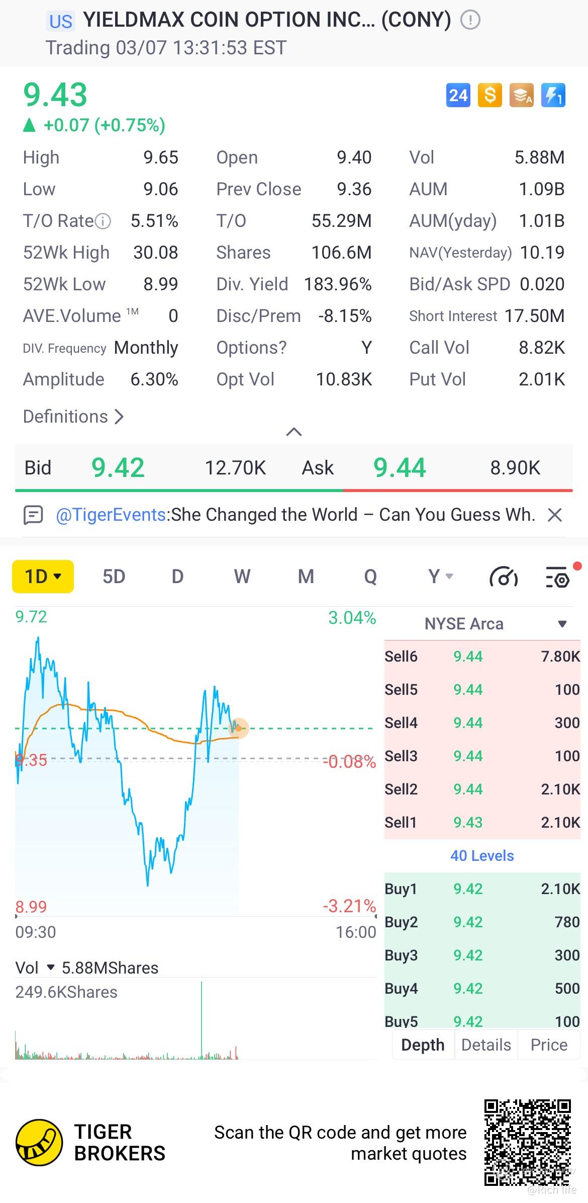 $YIELDMAX COIN OPTION INCOME STRATEGY ETF(CONY)$