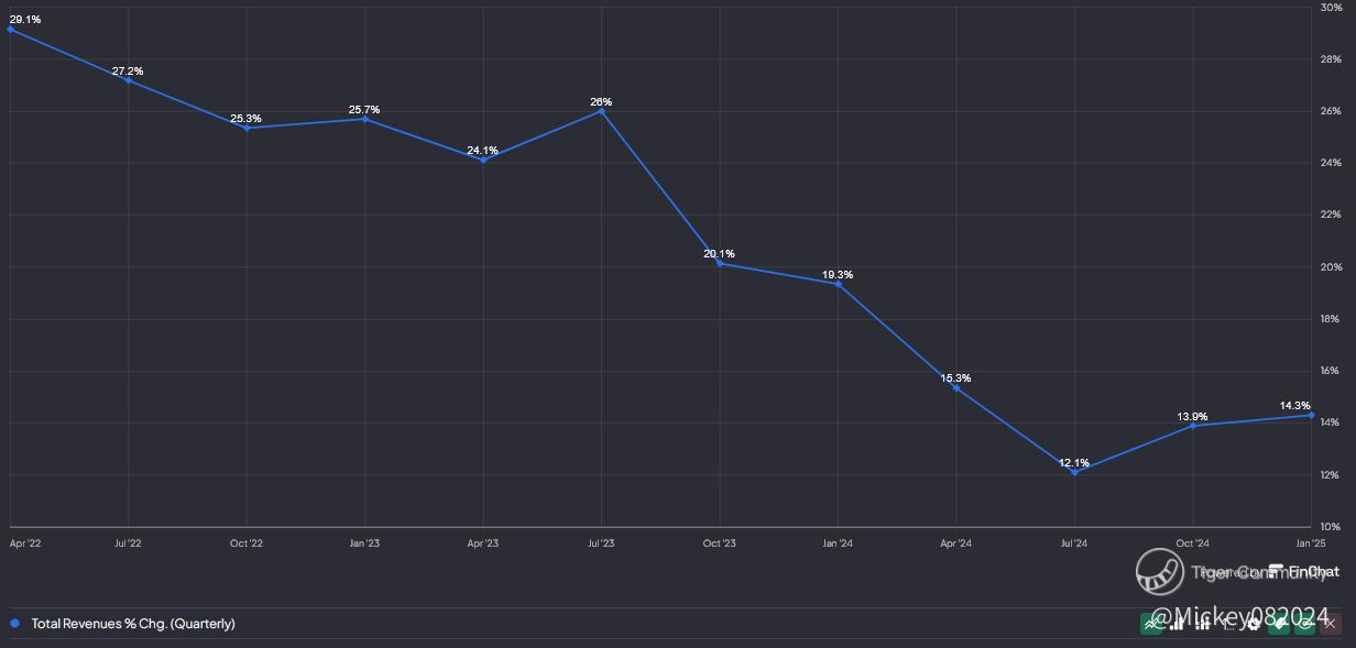 Now, Palo Alto Networks' revenue growth has been slowing in recent years. Back in 2015, the company was experiencing nearly 60% annual growth, but in the latest quarter, that rate has dropped to just 14%. This slowdown is despite the platformization strategy they’ve been pursuing.